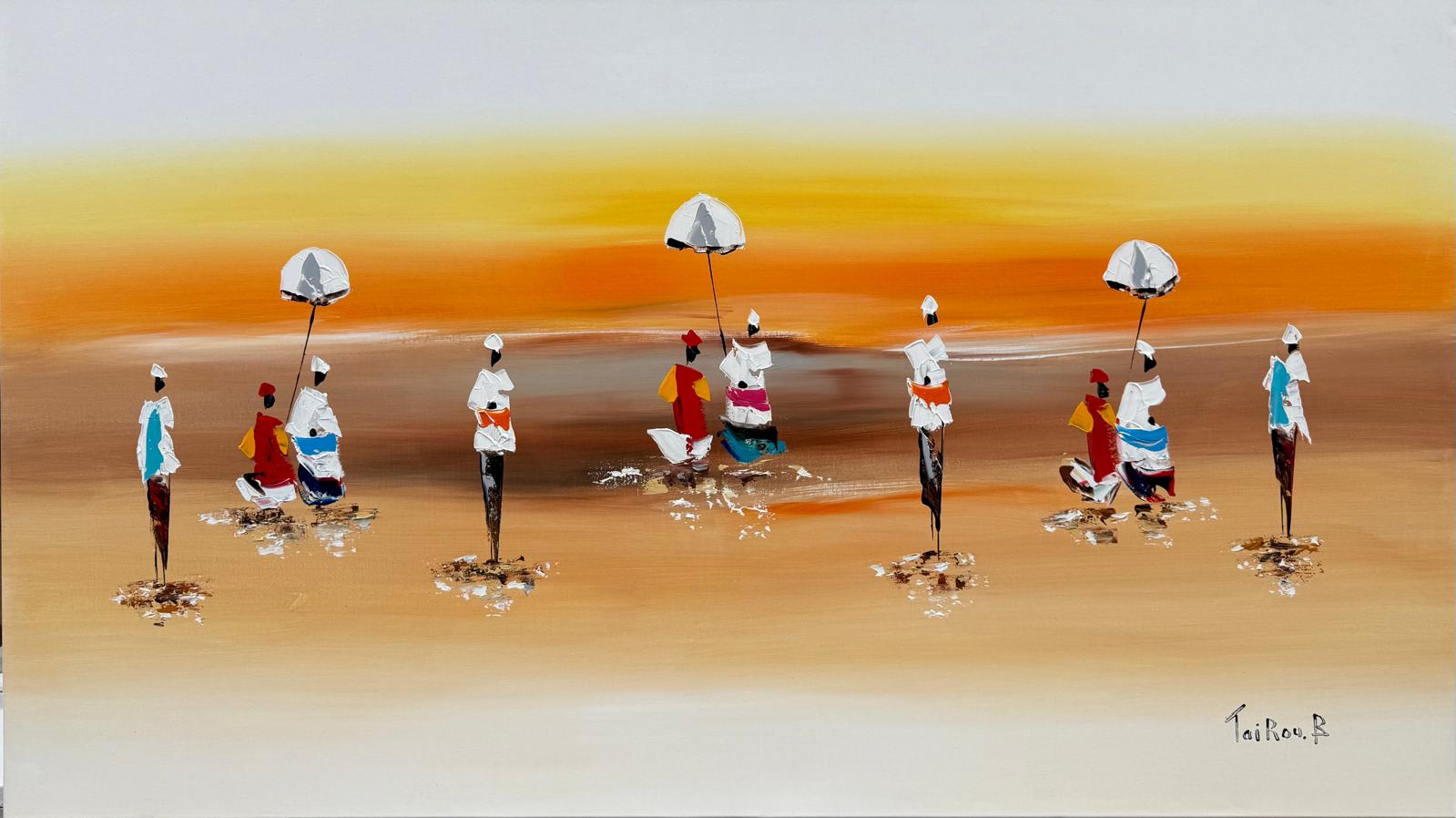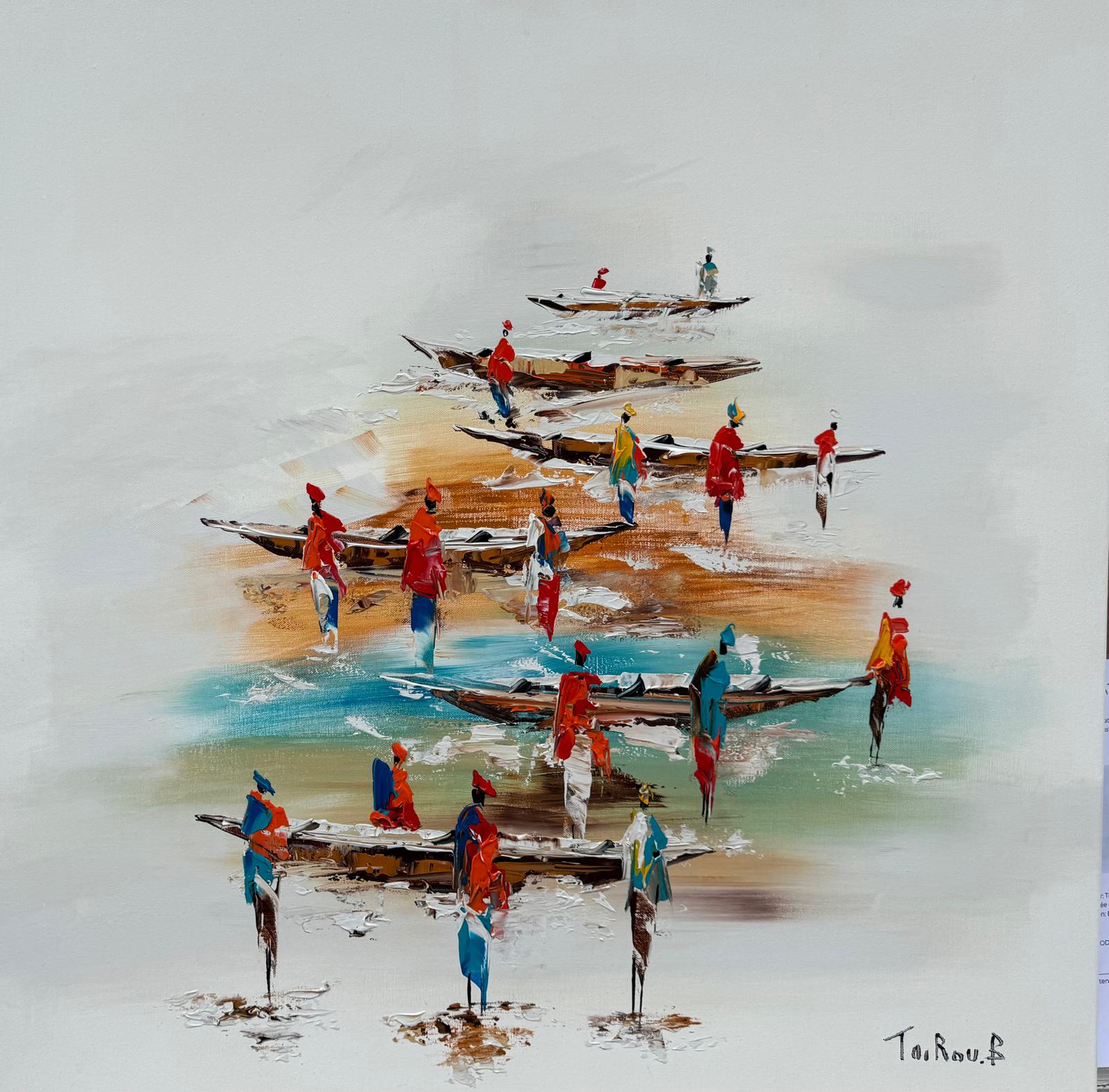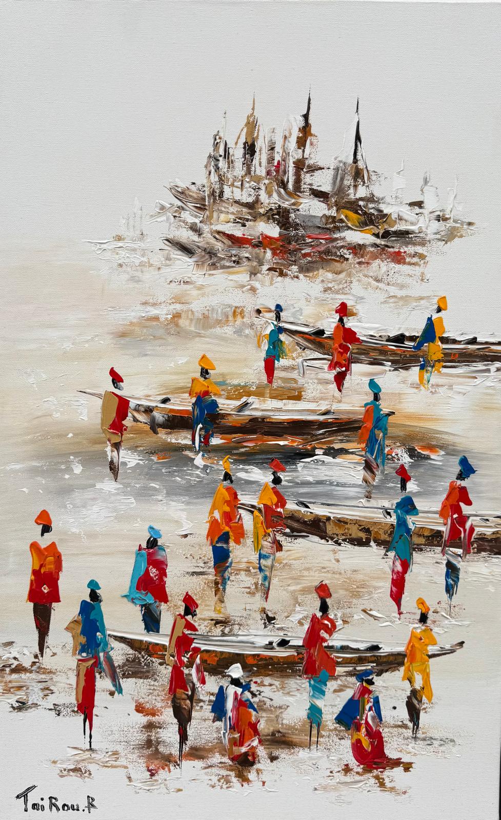 Découvrez les œuvres uniques de Tairou Bodian, artiste sénégalais qui sublime la vie africaine à travers des couleurs éclatantes et une technique de spatule incomparable.