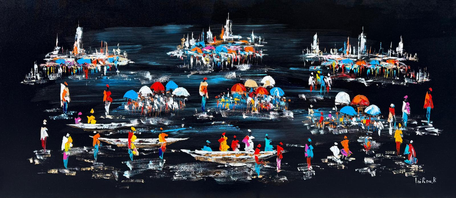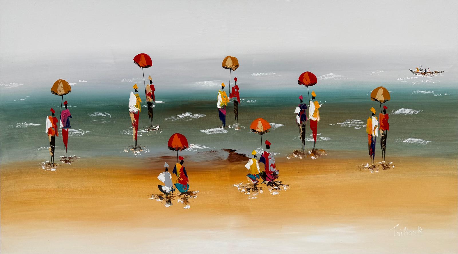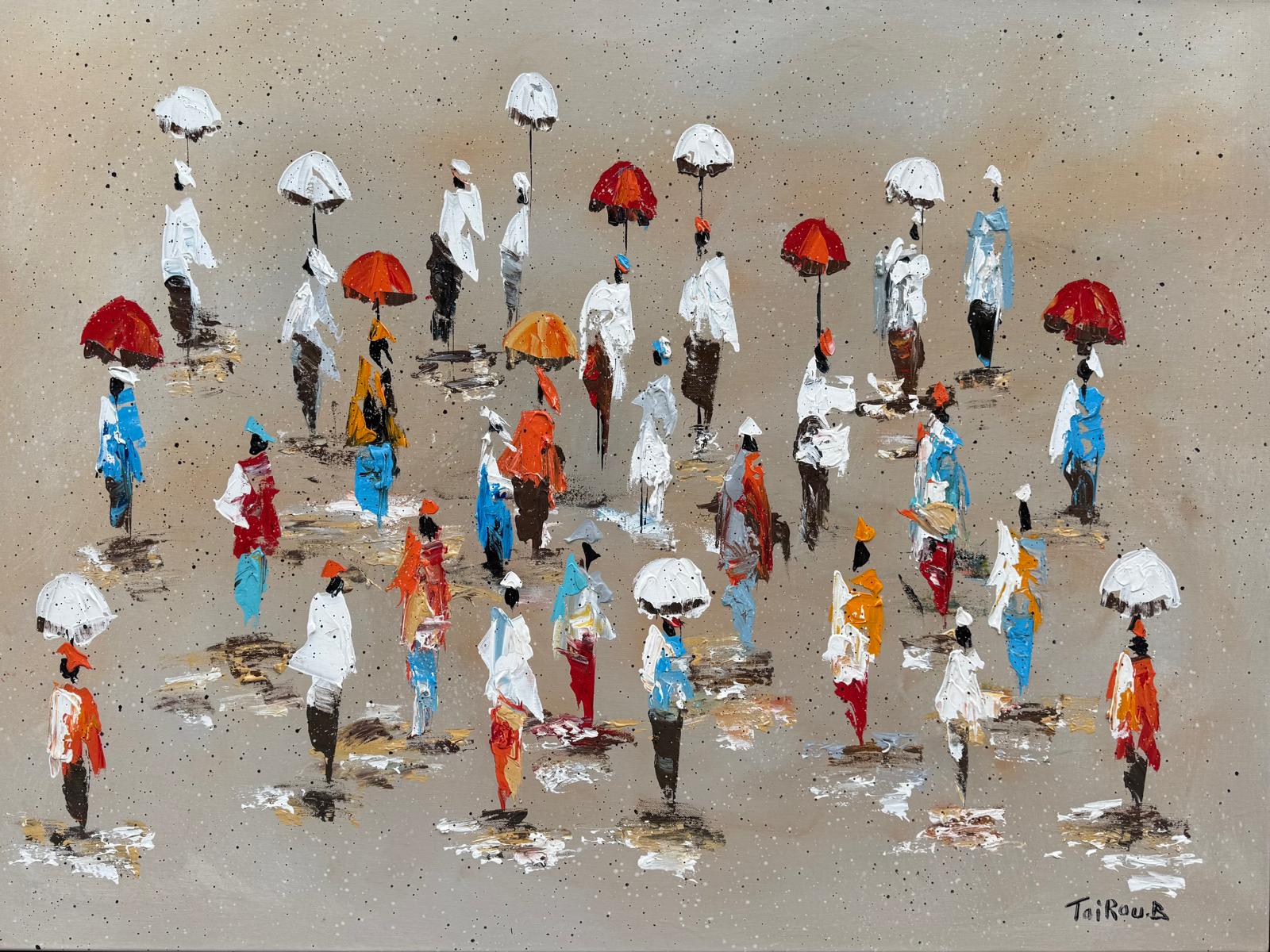 Découvrez les œuvres uniques de Tairou Bodian, artiste sénégalais qui sublime la vie africaine à travers des couleurs éclatantes et une technique de spatule incomparable.